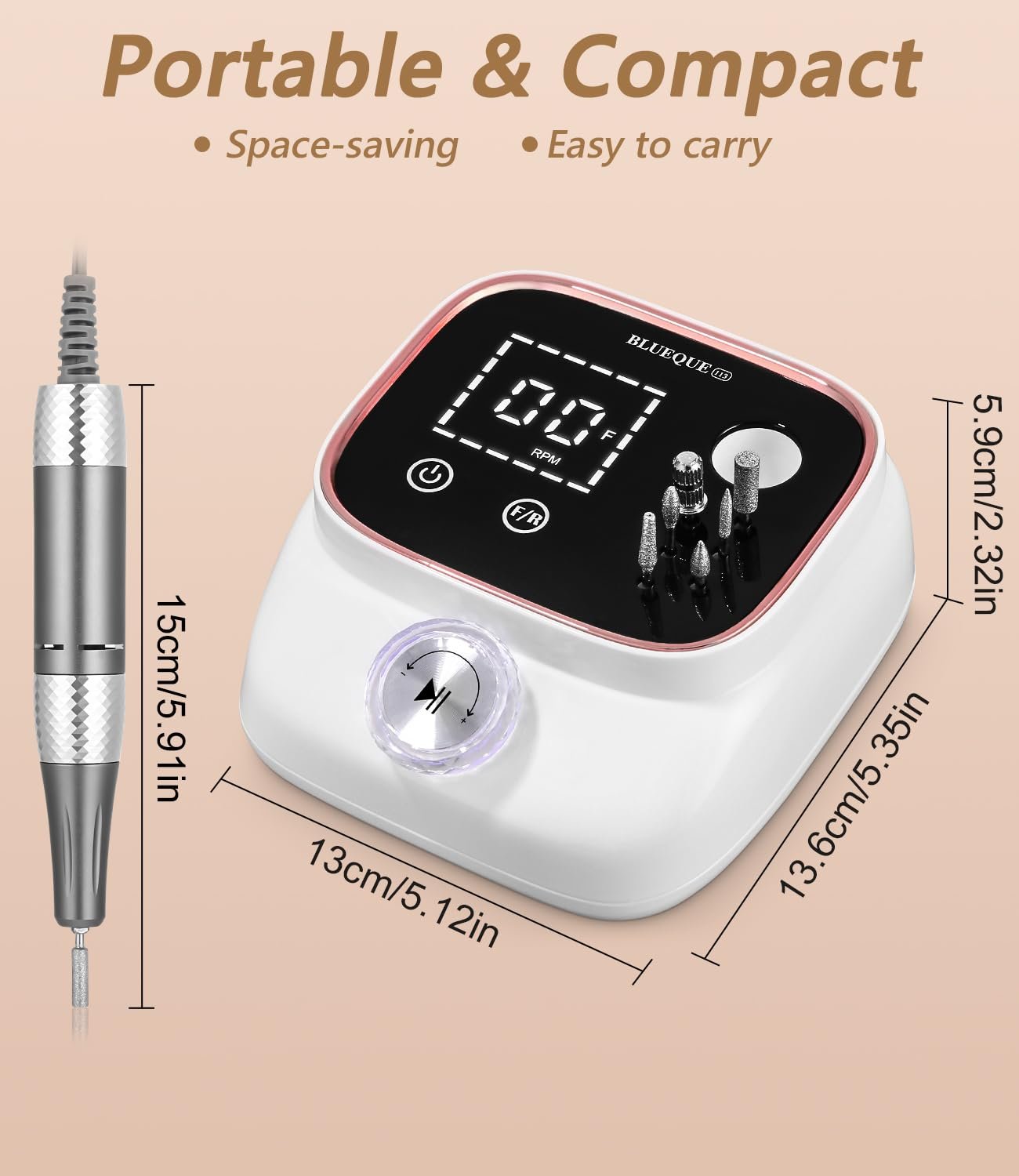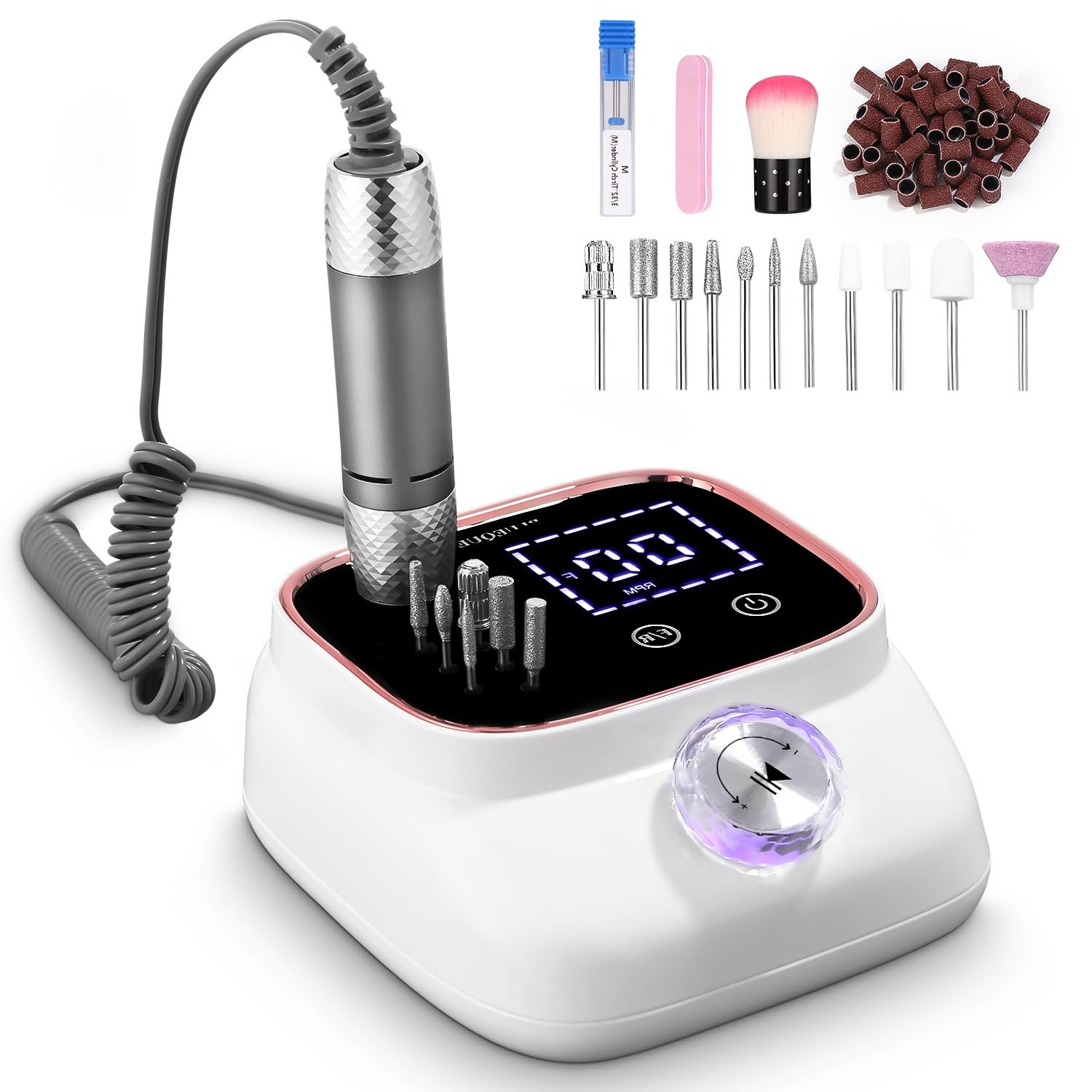 - Professional electric nail cutter: This electric nail cutter is equipped with an adjustable speed controller and a high-resolution LCD display that allows you to easily control the speed from 0 to 45,000 RPM, which is effective for natural acrylic nails, gel nail polish, powder nails and cuticle removal. This makes it an ideal nail drill bit for experienced salon technicians and beginners starting their cutters for gel nails at home or in the salon.