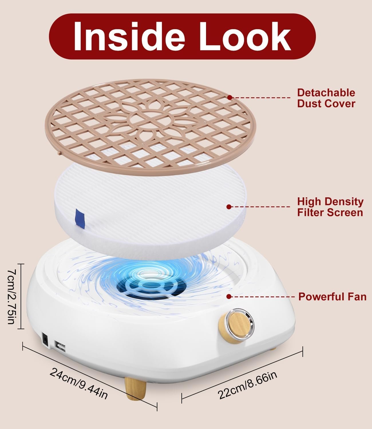 ADJUSTABLE SUCTION: This professional nail vacuum cleaner is made with a high-quality suction motor, which makes it more convenient when filing nails. Equipped with adjustable buttons, you can adjust it to any suitable suction power.