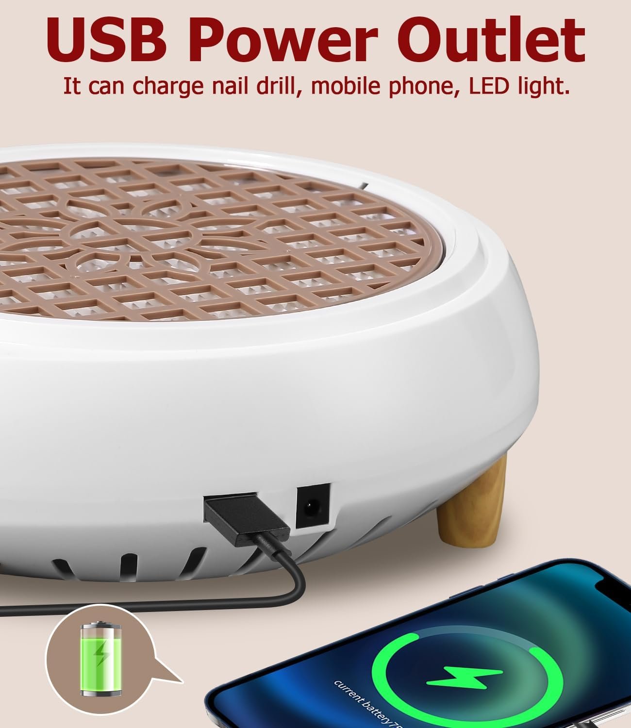 EFFECTIVE HEAT DISSIPATION: The ventilation holes on the back of the nail dust collector tool have a continuous heat dissipation function, ensuring that the nail dust catcher will not get hot even after long time working. You can use it with peace of mind.