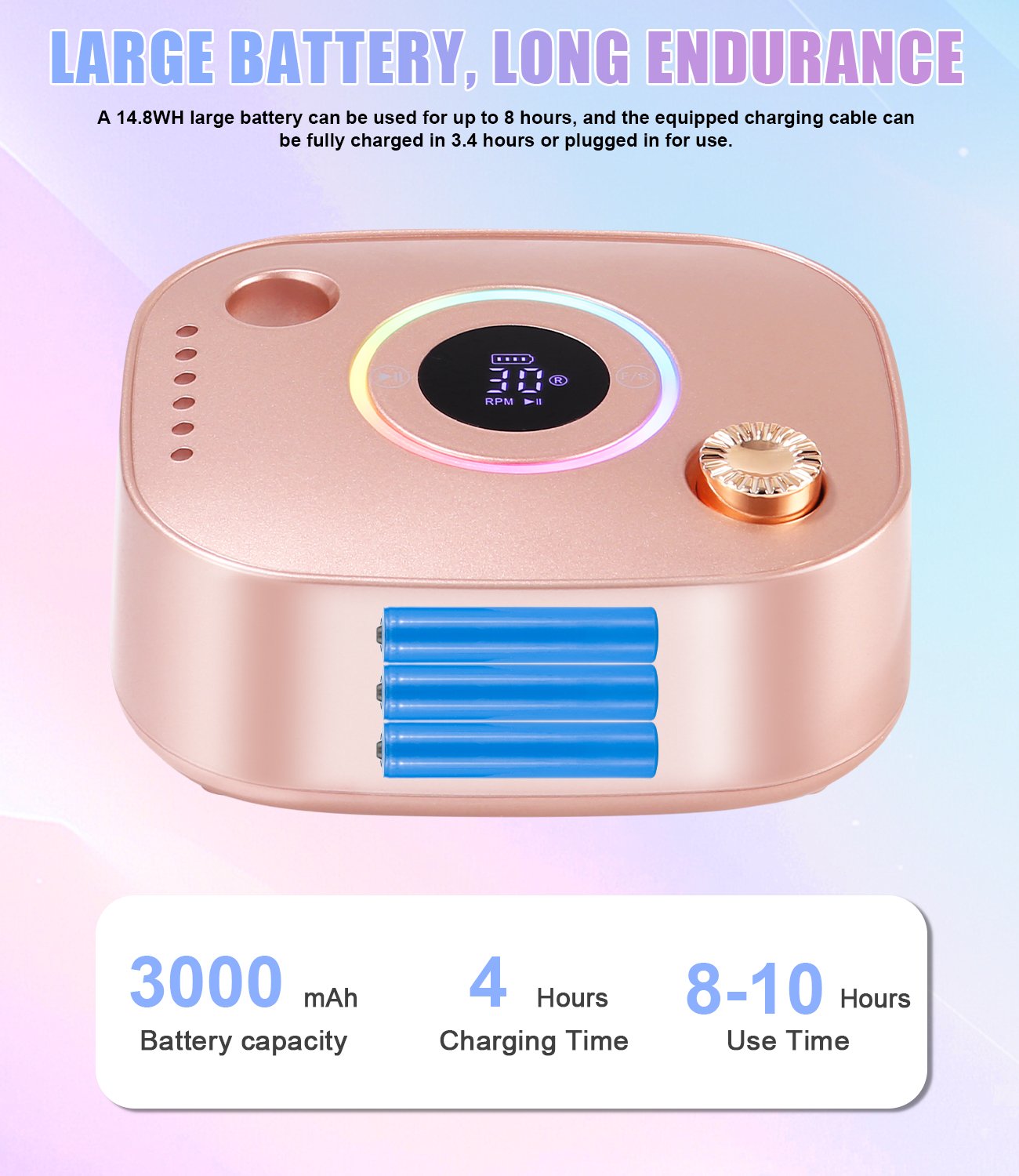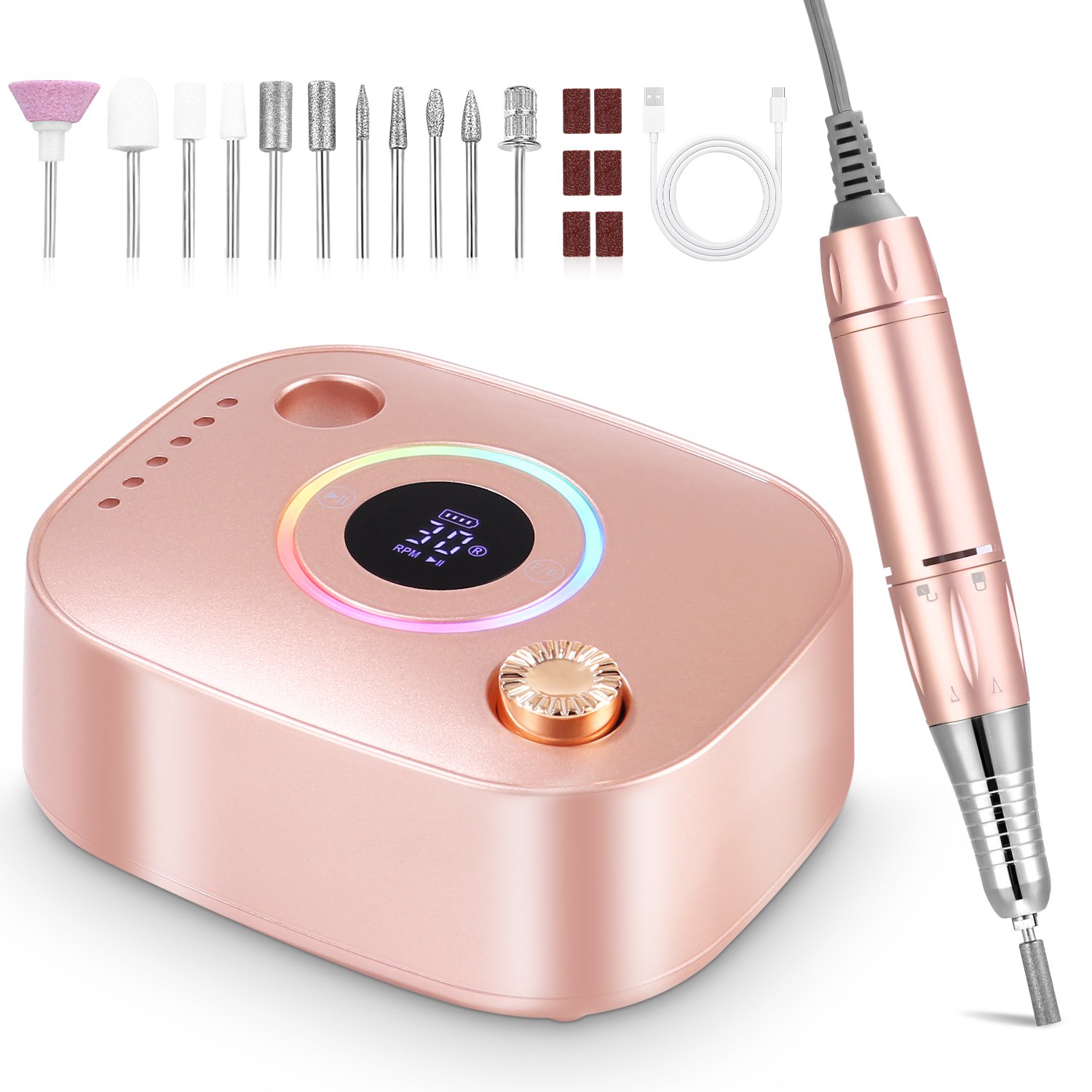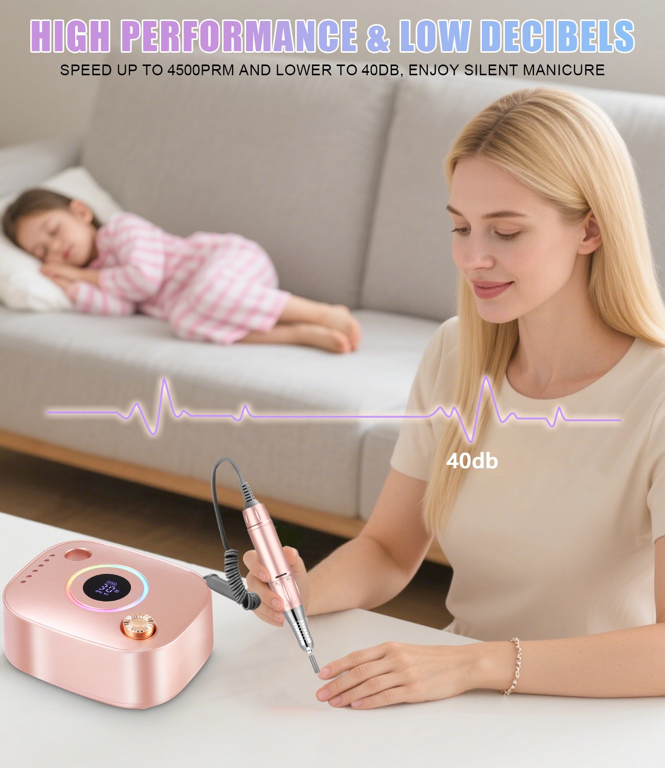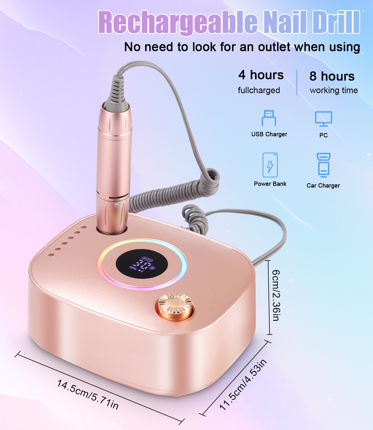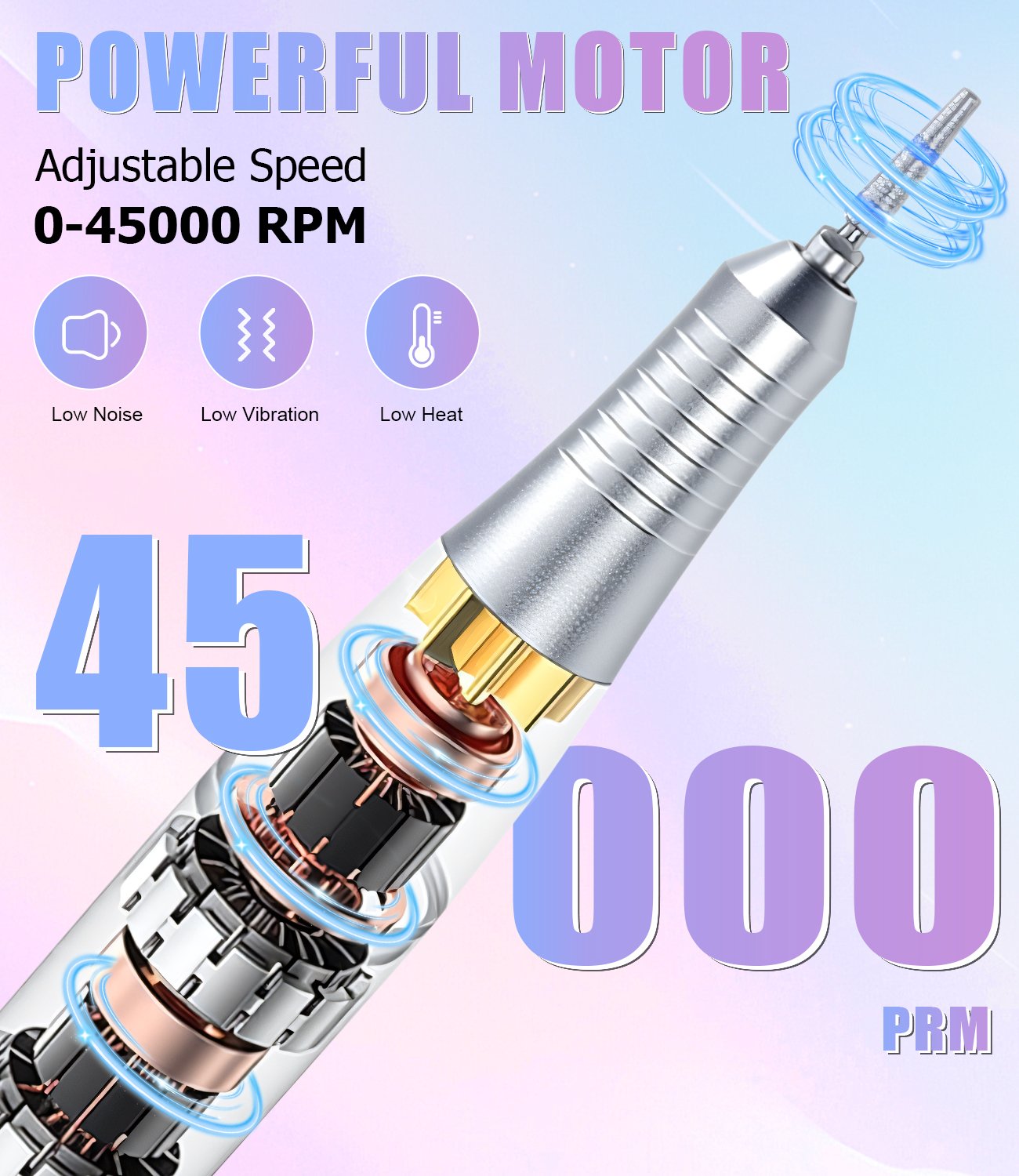 [Professional Electric Nail Cutter] This electric nail cutter is equipped with an adjustable speed controller and a high-definition LCD display, which allows you to easily control the speed from 0 to 45,000RPM, which is effective for natural acrylic nails, gel nail polish, powder nails, and cuticle removal. This makes it an ideal nail drill for experienced salon technicians and beginners who start their gel nail cutters at home or in the salon.