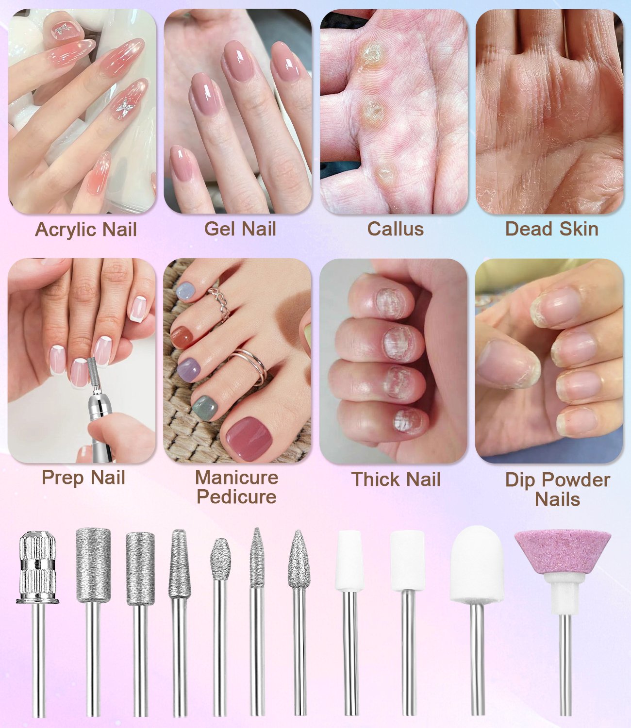 [Practical Accessories] The cutter for gel nails set includes 6 abrasive drill bits, 6 abrasive belts, and the main unit is equipped with a grinding needle socket and 6 grinding drill bits, which you can use to keep the accessories tidy and improve your nail art efficiency. The cutter for gel nails set is a great gift choice, whether for personal use or for friends and family.