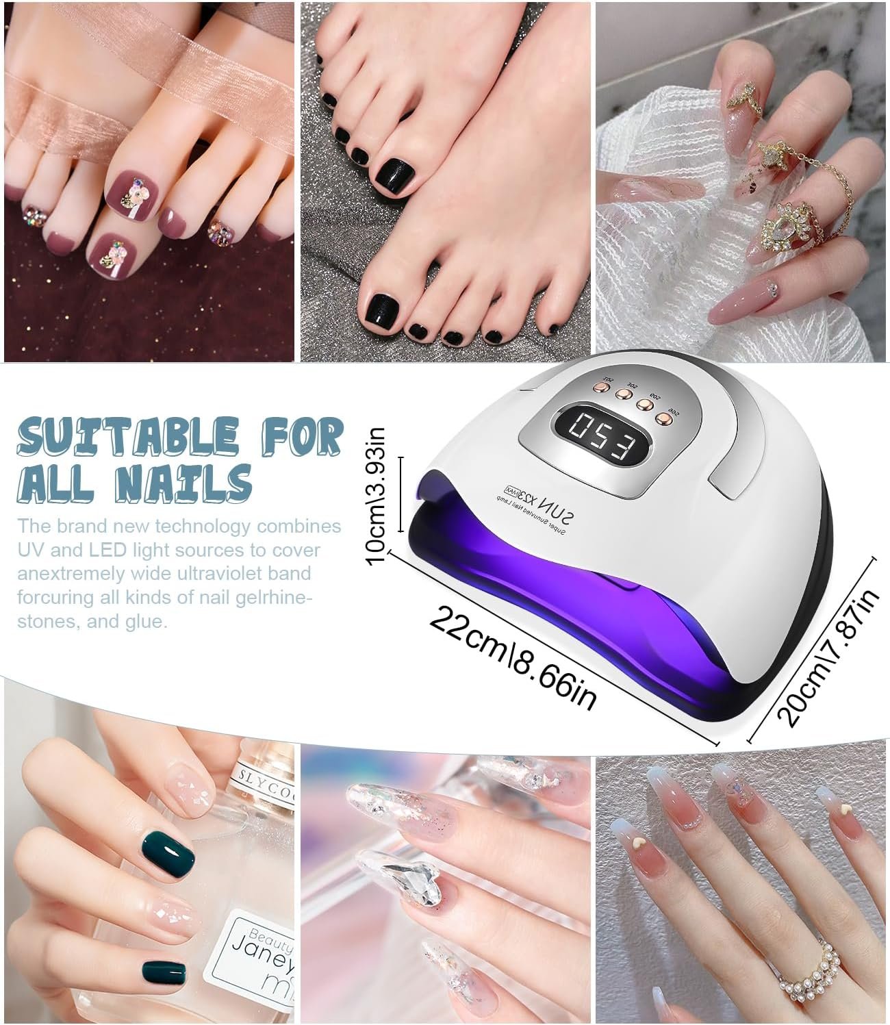 Tips: Different gel types may require different curing times due to different composition ratios. The nail lamp is not suitable for normal nail polish. It is normal that the base coat remains sticky after using the LED nail lamp, which makes the colour gel stay on your nails longer.